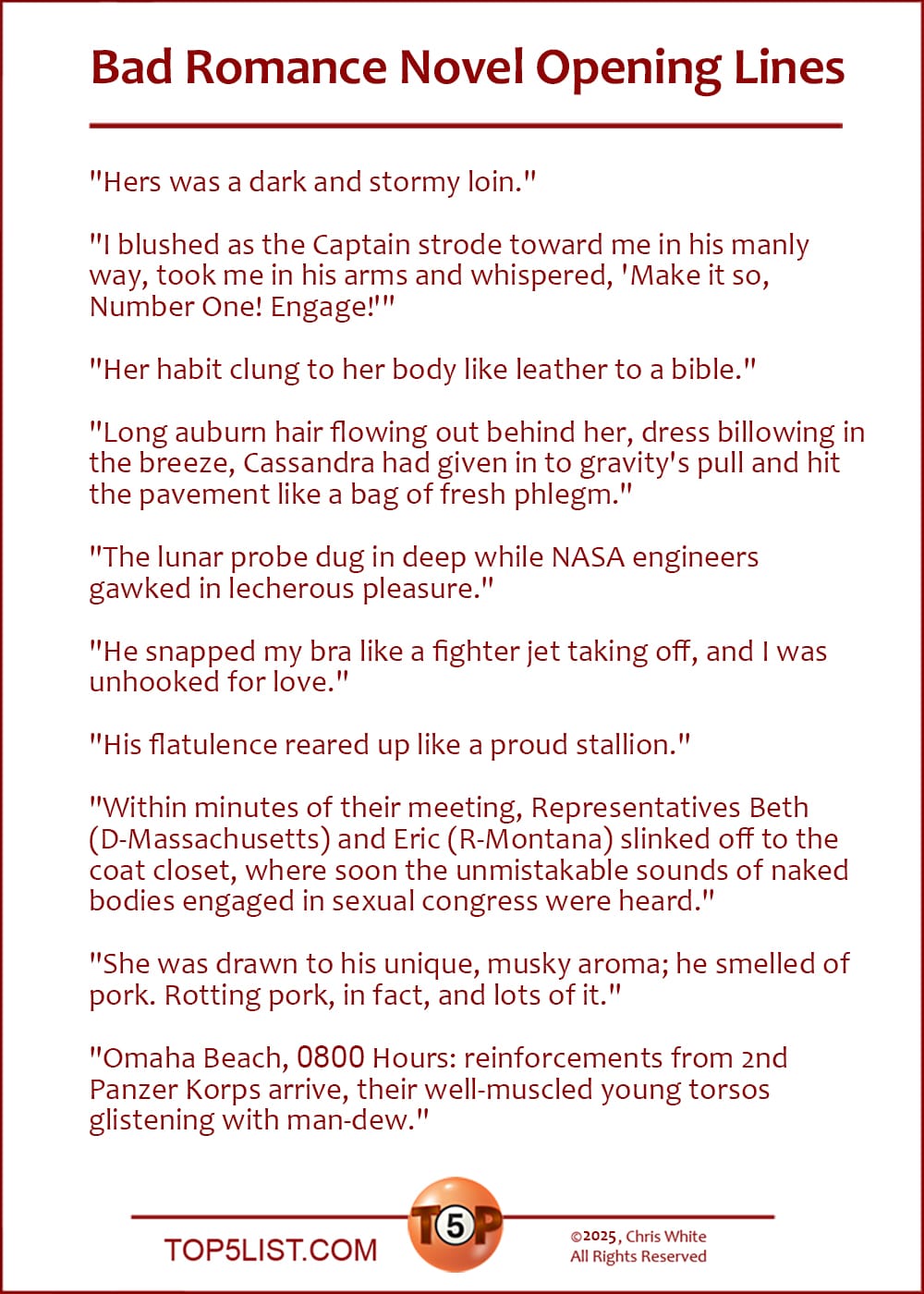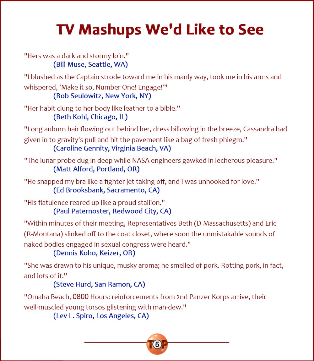 We're having some trouble with our server over at Humorlabs.com and couldn't gather submissions for a new list this week. But panic not! We are instead presenting one of our best Top5 lists ever, from from August of 1997.